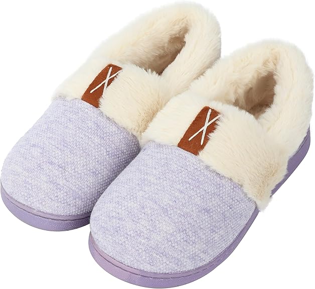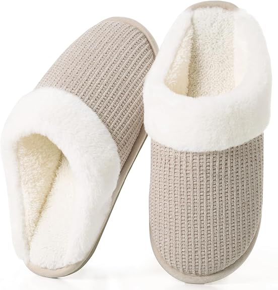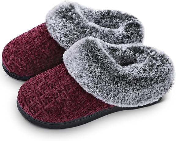 DULCET Slippers for Women,Memory Foam with Fuzzy Collar Indoor House Slippers Bedroom Non-slip Plush Slippers.
