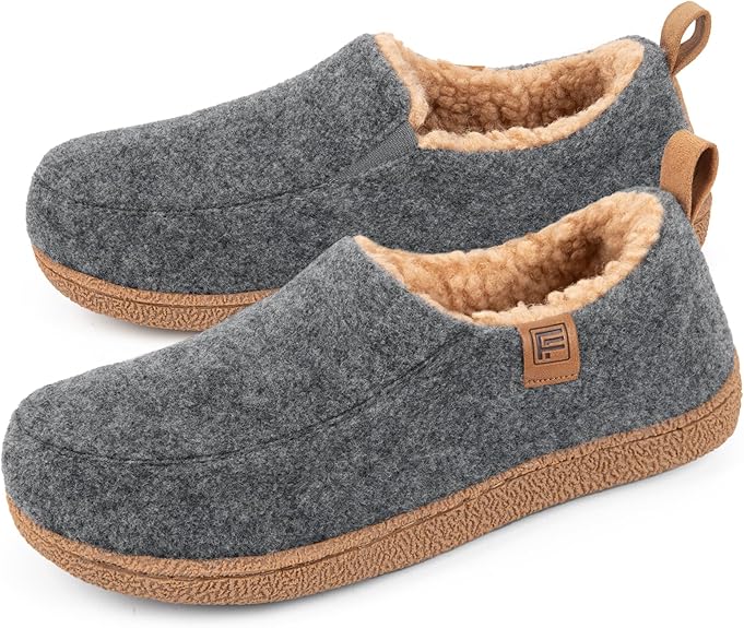 Womens Felt House Slippers Warm Memory Foam Home Shoes with Rubber Sole Closed Back Slipper Boots Indoor Outdoor
