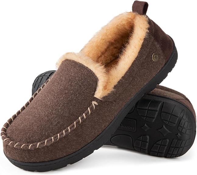 Men's Memory Foam Moccasin Slippers, Indoor and Outdoor Warm Fuzzy Fleece House Shoes