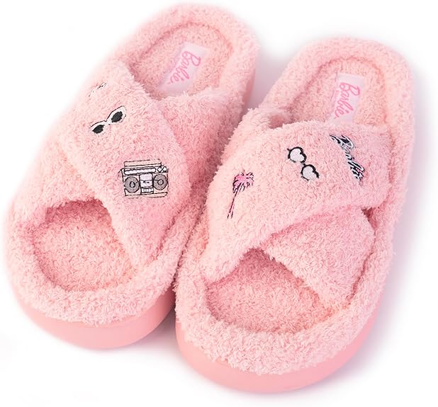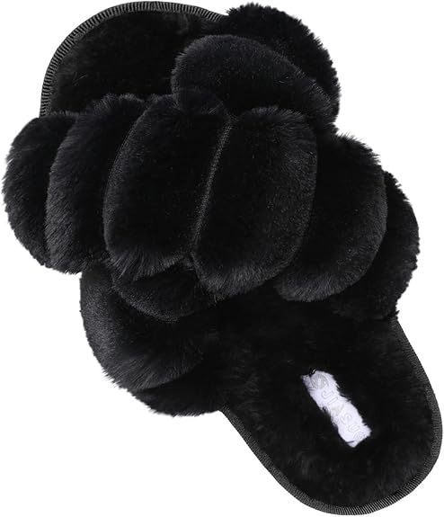 Women's Open Toe Slippers Fuzzy Fluffy House Slippers for Women Cozy Criss Cross Furry Slides Slippers
