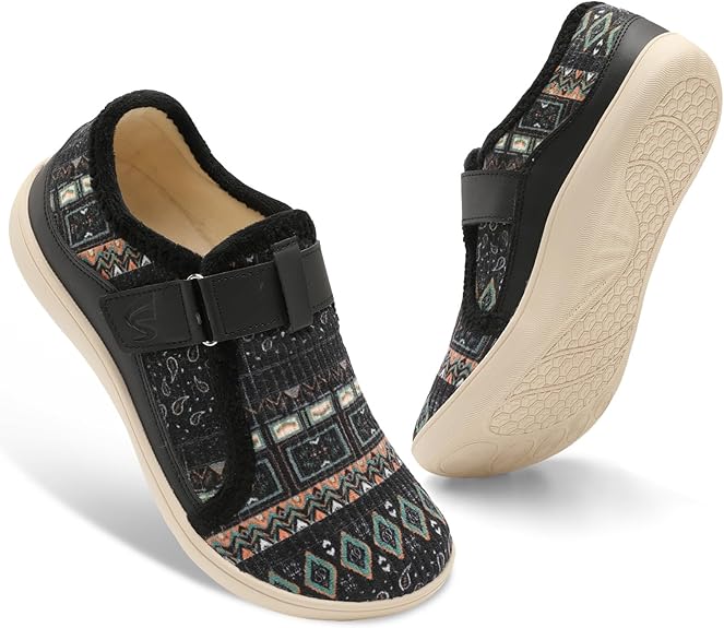 Wide Womens Slippers Adjustable House Shoes Indoor Outdoor Barefoot Slippers Cozy Walking Shoes Swollen Edema Diabetic Shoes
