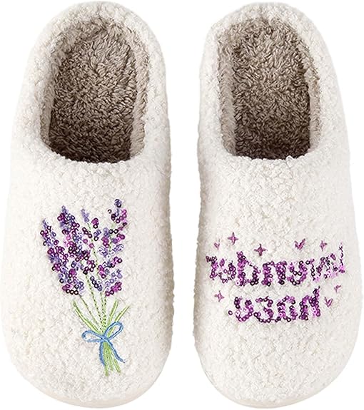 Memory Foam Slippers for Women - Indoor Cozy House Slip-on with Warm Curly Full