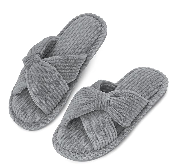 Slippers for Women House Memory Foam Slippers Open Toe Corduroy Cross Bow Womens Slipper Slides Comfy Indoor Bedroom Shoes