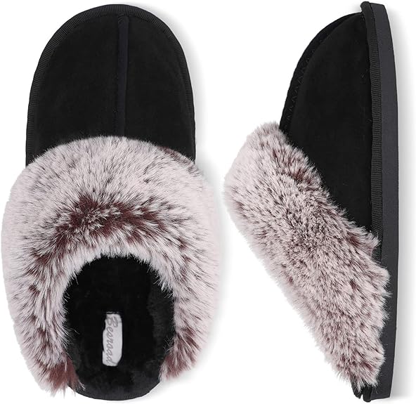 Womens Fluff Dual Memory Foam Slippers Ladies Cozy Arch Support Warm Scuff Slippers Slip on Comfy Winter House Shoes with