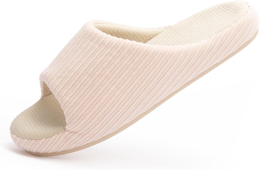 Slippers for Women House Memory Foam Slippers Open Toe Corduroy Cross Bow Womens Slipper Slides Comfy Indoor Bedroom Shoes