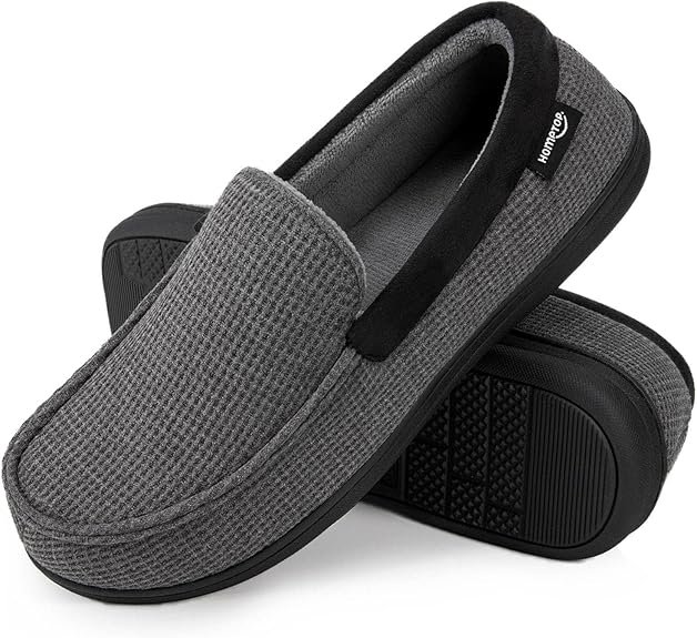 Men's Comfort Memory Foam Moccasin Slippers, Breathable Cotton Knit Terry Cloth House Shoes for Indoor Outdoor