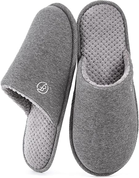 Men's Cotton Knit Slippers Lightweight Memory Foam Indoor House Shoes with Anti-Skid Sole